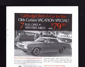 1970 Budget Rent A Car Car Rental Oldsmobile Cutlass Etsy